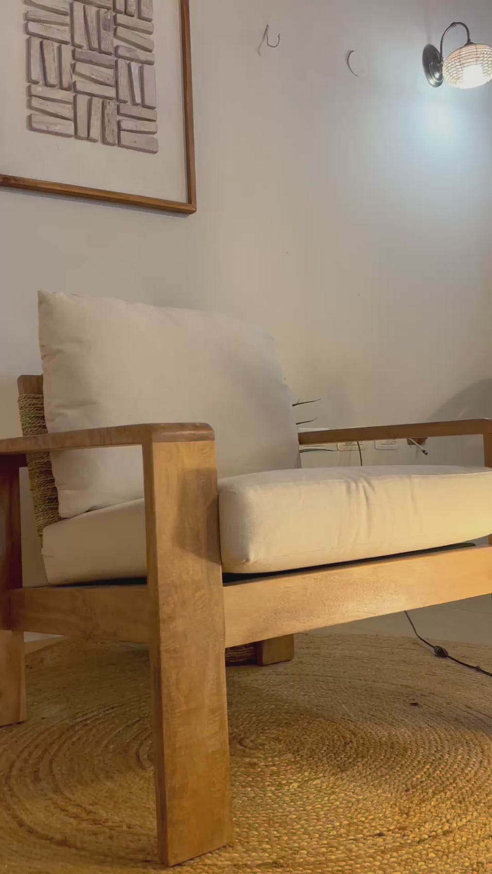 הכורסה, ברוחב 80 ס"מ, גובה 71 ס"מ ועומק 74 ס"מ, היא פריט עיצובי שמזמין להירגע בסטייל. עשויה מעץ מנגו מלא בגוון טבעי, בעל מראה חמים ואותנטי, המשלב עמידות גבוהה עם יופי טבעי מרהיב.