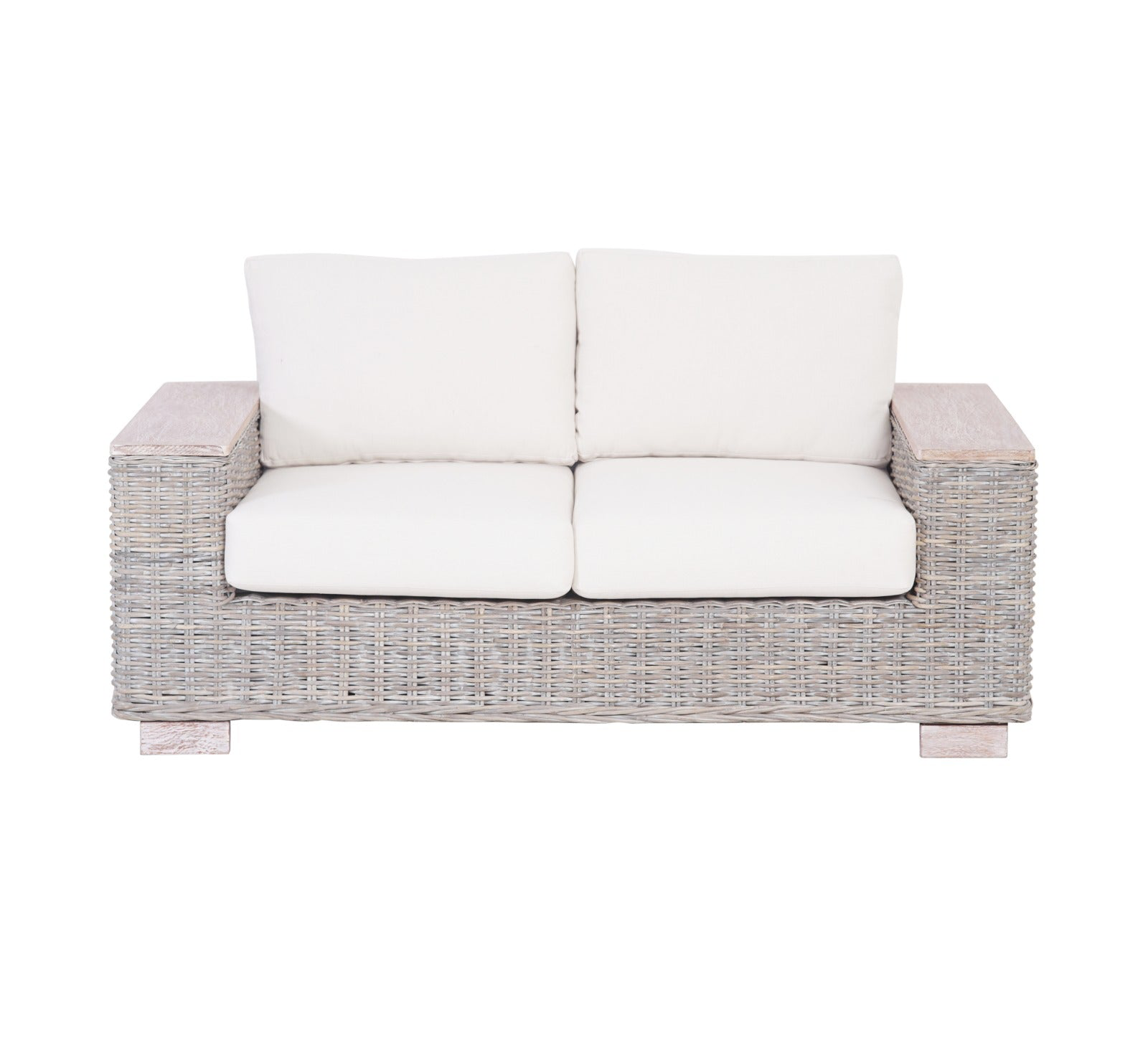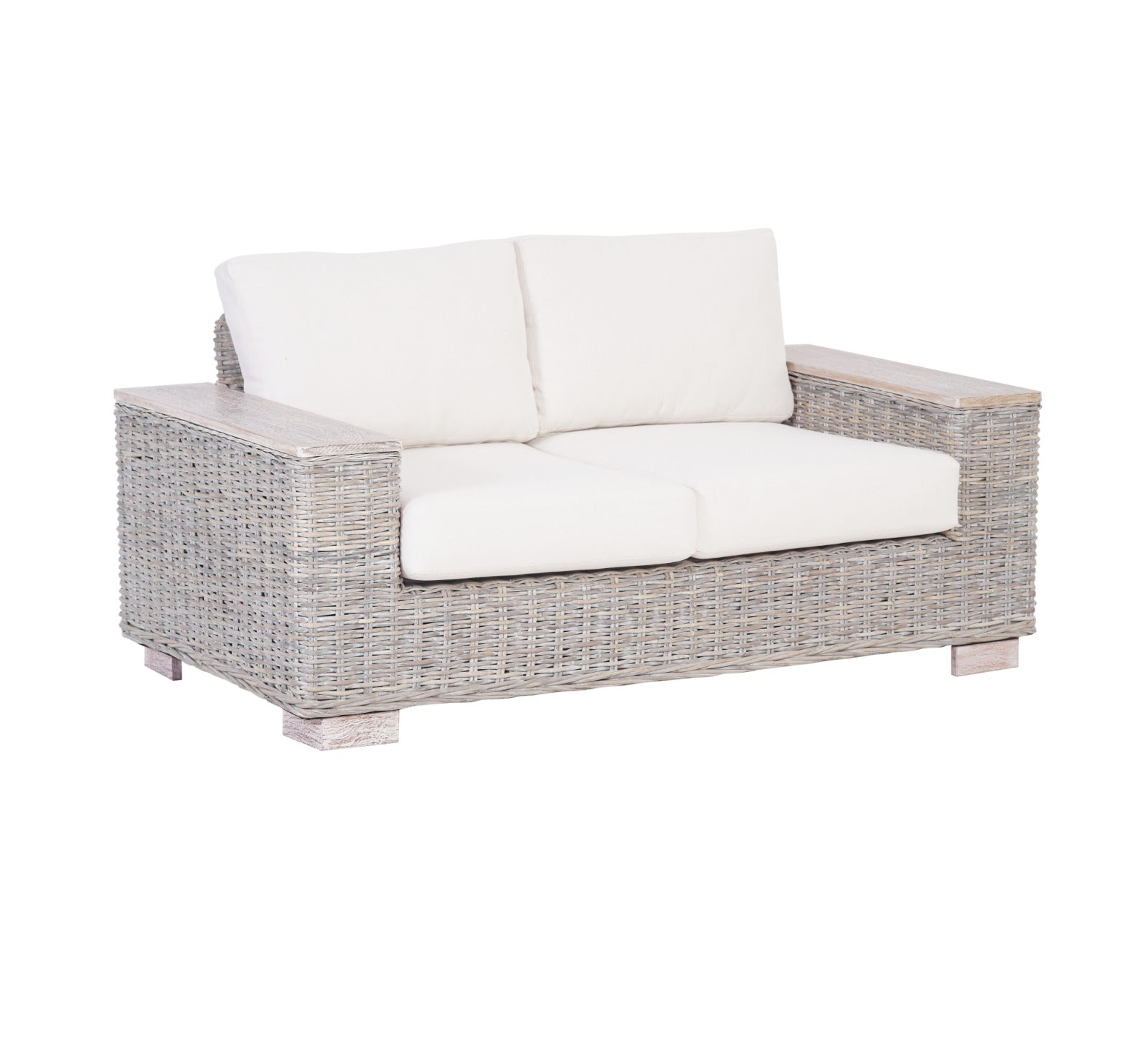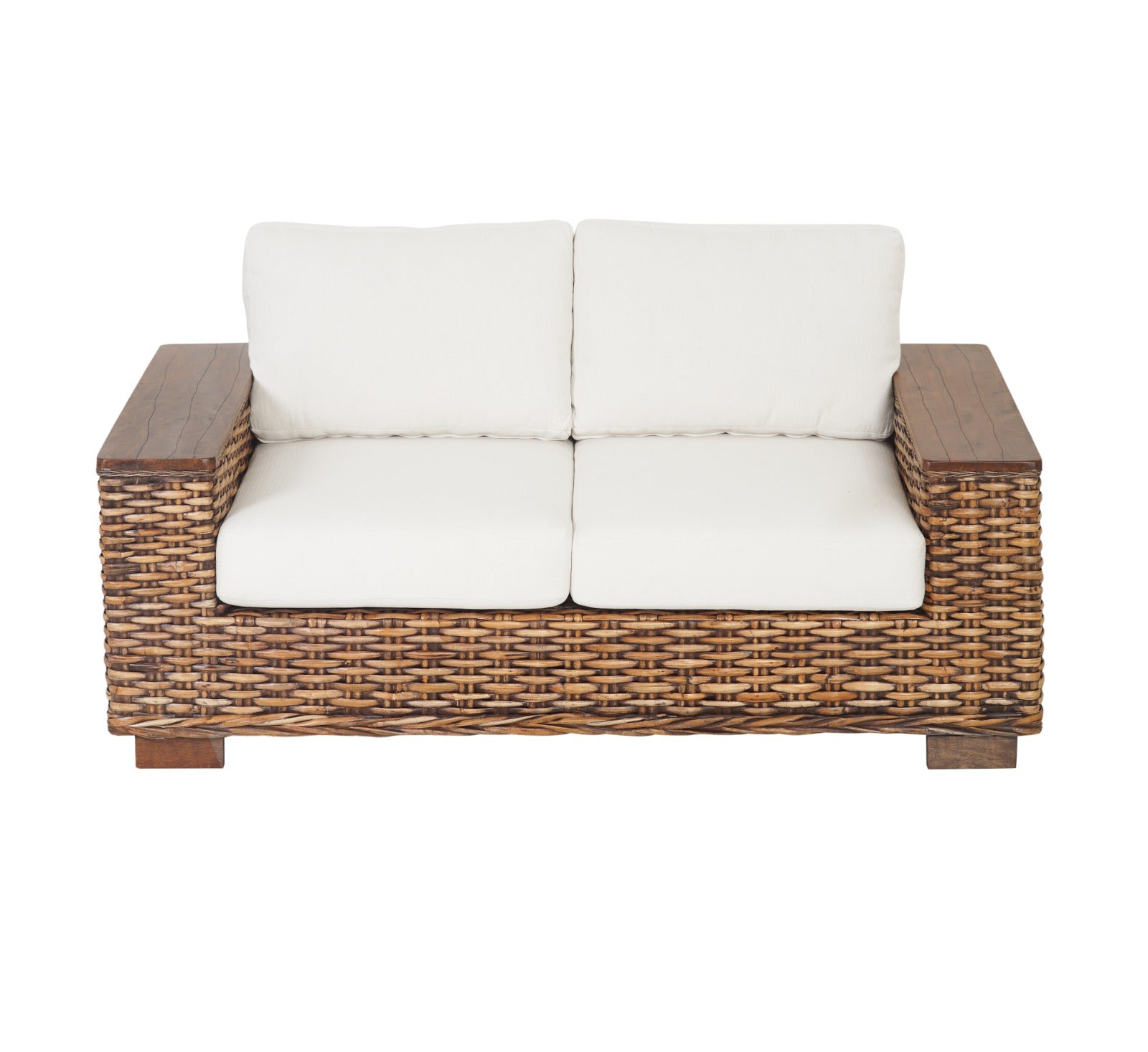 ספה דו מושבית מרטאן טבעי עם ידיות עץ מנגו