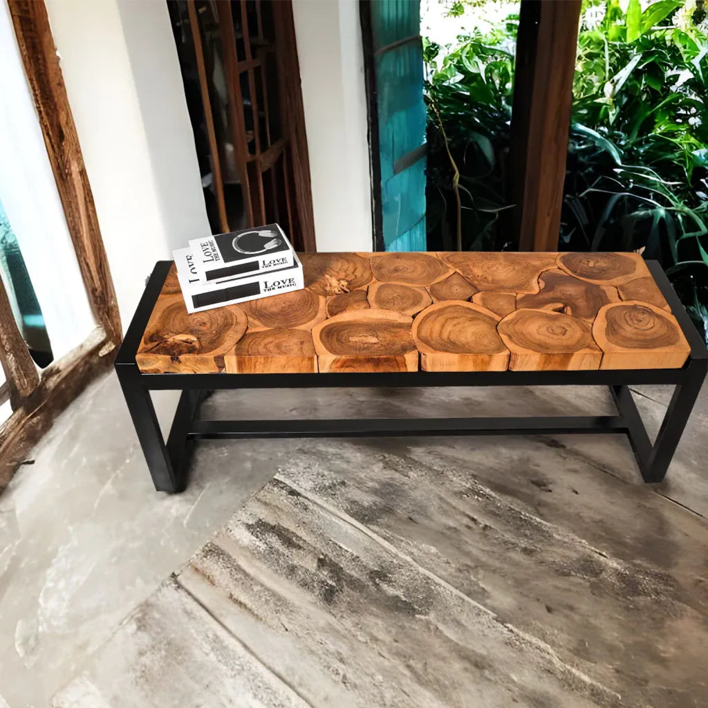 ספסל עשוי מעץ טיק