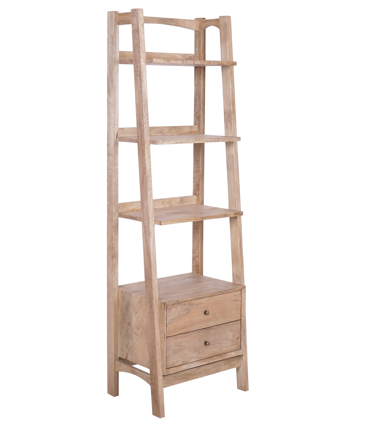 הספרייה כוללת שני מגירות נוחות לאחסון וארבעה מדפים רחבים המאפשרים להציג ספרים, פריטי עיצוב וחפצים אהובים.