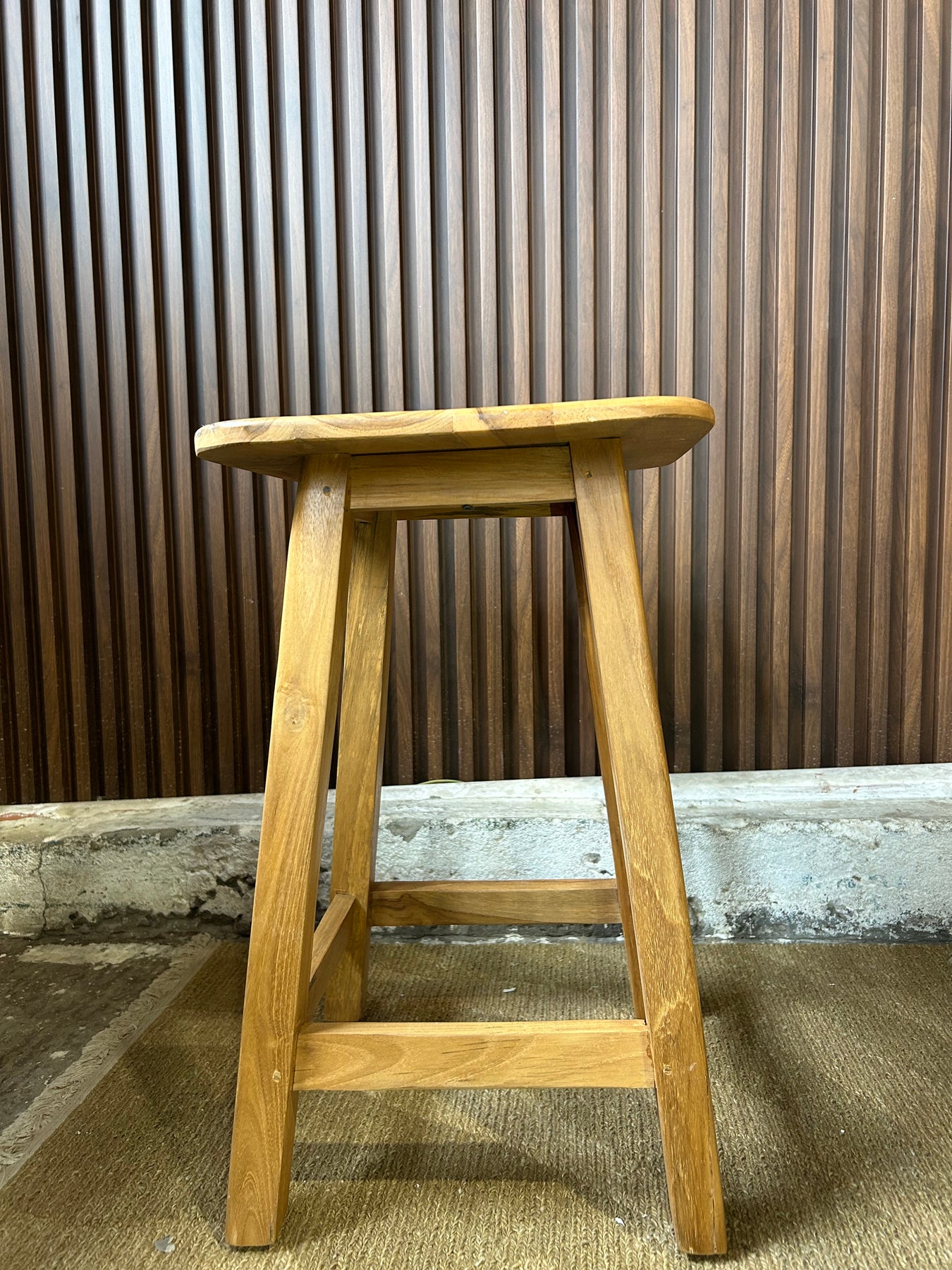 שרפרף ללא משענת, עשוי עץ טיק מלא ואיכותי, בעיצוב נקי ובעל נוכחות טבעית וחמימה.
